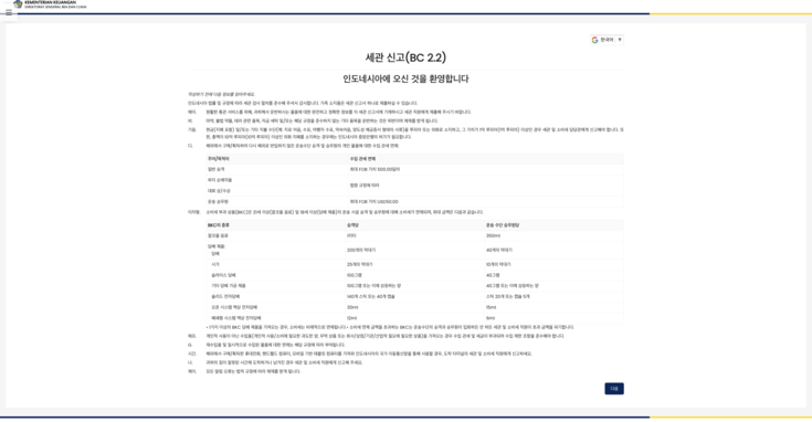 e-HAC 인도네시아 (검역/건강신고)