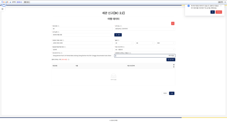 - 세관 신고서 온라인 작성